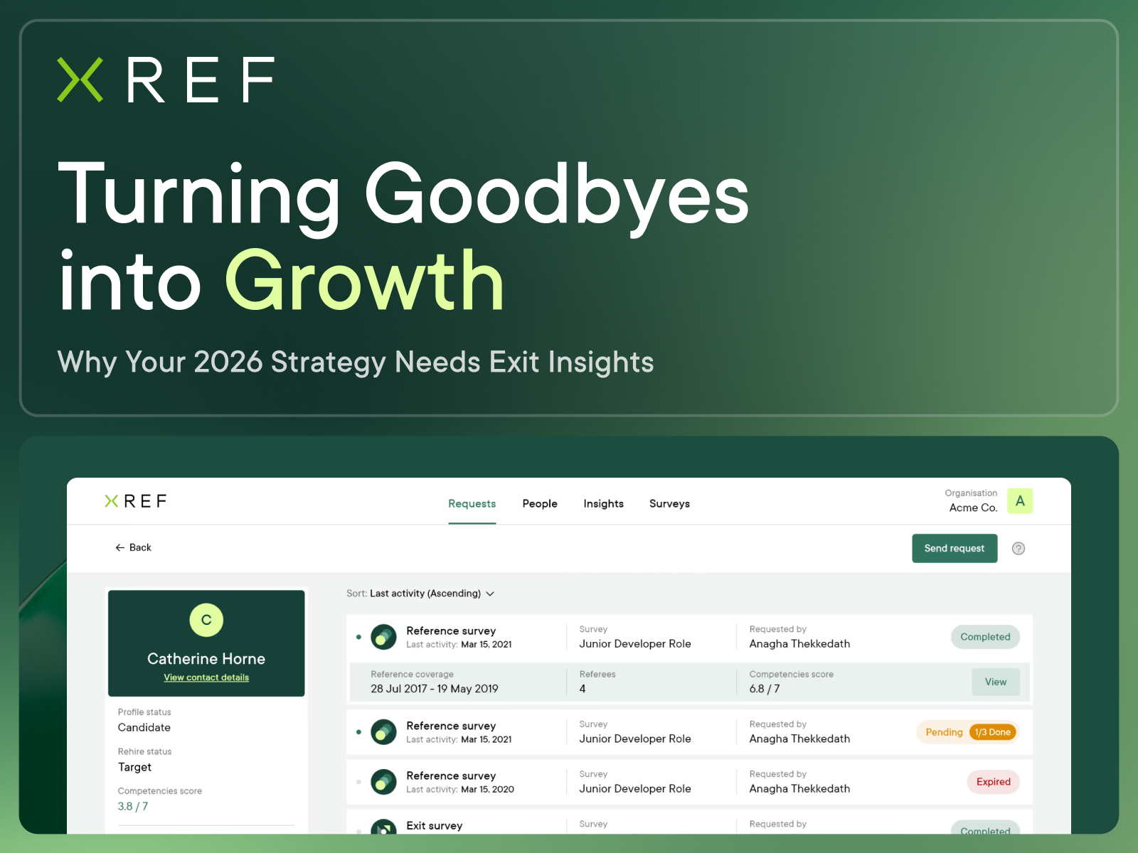 The insights you gather today will define your ability to retain high performers tomorrow. To help you kickstart your strategic growth this year, Xref is offering a limited-time opportunity to experience the power of automated exit data.